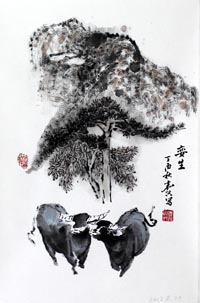 章嘉兴,祖籍江西上饶人,现居北京。从小酷爱绘画,少时生活在江西农村,放牛种地,对水牛有深厚情感,后来虽进城工作,仍念念不忘如何能用国画(水墨画)形式表达水牛习性,水牛精神,水牛在农耕时代的巨大贡献。于是,花了近二十年时间学习传统,临募古画及大量写生,专攻水牛,对水牛形成自己独特的审美情趣,画得灵动和有豪气,深得观者喜欢。 章嘉兴曾任中广电设计研究院信息网络研究所所长,教授级高级工程师,享受国务院政府特殊津贴,