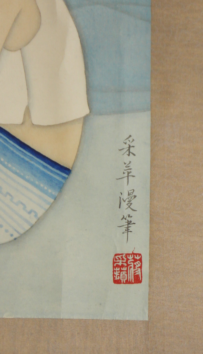 蒋采萍 女,原籍河南洛阳,生于河南开封。1958年毕业于中央美术学院,1959年后任教于山西艺术学院。1962年后任教于中央美术学院,现为该院中国画系副教授、工笔画室主任。中国美术家协会会员,中国当代工笔画学会副会长,北京工笔重彩画会副会长。 尺寸:57.5厘米x52.5厘米. 80年代左右的老裱.有意的联系.电话13718331060
