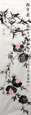 张宝国zbg 花鸟 榴石园(保真)