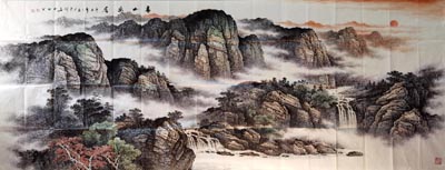 赵君辉赵君辉 小八尺山水 泰山旭日