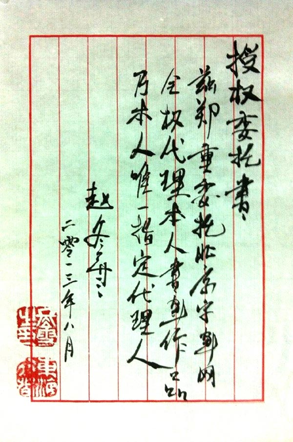 赵冬雪 授权书